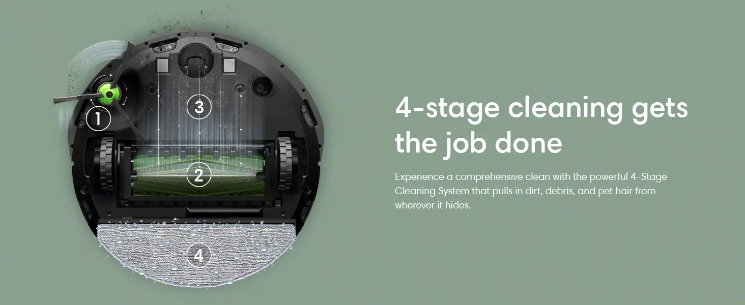 - POWERFUL PERFORMANCE. POWERFUL PICKUP. Pulls in the everyday dirt and debris with a 4-Stage Cleaning System, featuring unique Dual Multi-Surface Rubber Brushes that adjust to different floor types and avoid getting tangled with pet hair.