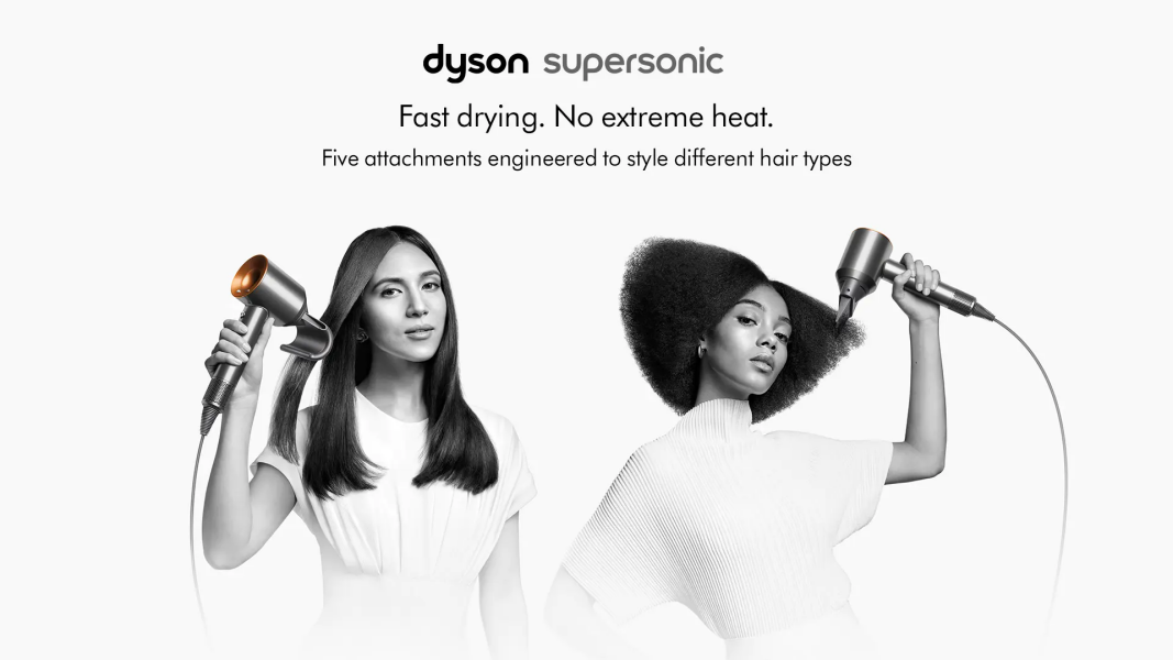WHAT IT IS:The hair dryer re-thought. Helps prevent extreme heat damage to protect natural shine. Air temperature is measured 40 times every second, keeping the temperature under control. Ultra fast drying. Drying shouldn't take forever. For fast drying you need controlled, high velocity airflow.WHAT IT DOES:Fast drying: The small, powerful Dyson digital motor V9 combined with Air Multiplier technology produces a high-pressure, high-velocity jet of controlled air for fast drying and precision styling. Intelligent heat control: The Dyson Supersonic hair dryer measures air temperature over 40 times a second and regulates heat. This prevents extreme heat damage and help protect your hair's shine.test how to use itIncluded: Diffuser, Styling Concentrator, Gentle Air Attachment, Flyaway Attachment, Wide-tooth Comb.9.6"Lx3.8"Wx3.1"HModel Number - 885609025421Powerful Dyson digital motor V9 | Three magnetic styling tools | Designed for fast drying | 3 precise speed settings | 4 precise heat settings | Magnetic attachmentsCosmopolitan's Readers' Choice Beauty Award Winner 2023Cold shot - 82°F cold shot, to set your hair after stylingImported -